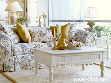 歐式田園大致可分為英式田園風格和法式田園風格。英式田園風格的家具多以奶白、象牙白等白色為主,使用高檔的樺木、楸木等做框架,配以高檔的環(huán)保中纖板做內(nèi)板,使用高檔油漆處理,制作以及雕刻都是純手工,線條細致,造型優(yōu)雅。英式田園風格家具還有另一大主要特點---華美的布藝,布面花色秀麗,多以紛繁的花卉圖案為主,碎花、條紋、蘇格蘭圖案是英式田園風格家具永恒的主調。法式田園風格最顯著地特征是家具的洗白處理及配色上的大膽鮮艷,洗白處理使家具流露出古典的雋永質感,黃、紅、藍的色彩搭配,則反映除了豐沃、富足的大地景象,而椅角被簡化的卷曲弧線及精美的紋飾也是法式優(yōu)雅鄉(xiāng)村生活的體現(xiàn)。