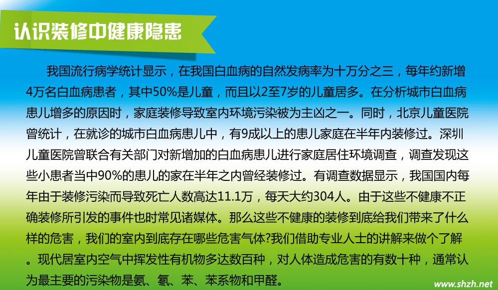 概要: 據(jù)瀟湘晨報(bào)長(zhǎng)沙訊,一年前,長(zhǎng)沙江先生4歲的女兒患上白血病。最近,江先生自己也被確診患有白血病。父女倆先后住進(jìn)省人民醫(yī)院,醫(yī)生的一句“最近家里有沒(méi)有裝修”的提問(wèn),讓江先生對(duì)自家的空氣質(zhì)量產(chǎn)生了懷疑。 家里沒(méi)有白血病遺傳史,為什么父女倆會(huì)先后患上白血???江先生百思不得其解。醫(yī)生在詢(xún)問(wèn)病史時(shí),一句“最近家里有沒(méi)有裝修”的提問(wèn)引起了江先生的注意,不過(guò),“我們的房子裝修8年多了,難道還有問(wèn)題?”