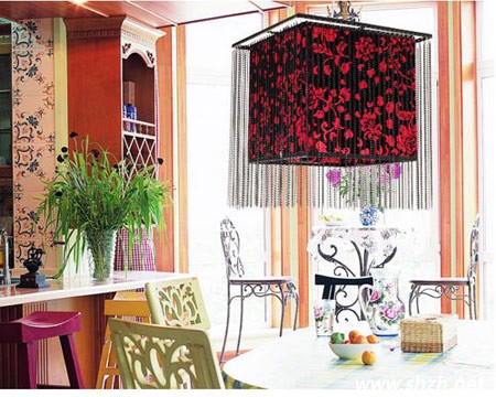 餐廳是大家進食的地方,中國人古話就有:民以食為天。所以說中國人對于吃是很講究的,那么為你家的餐廳填上一盞喜氣的彩燈會讓家人食欲大增。像圖中這樣一款黑紅相間的花紋布罩,古典優(yōu)雅與時尚并存,裝飾性強除外還照亮一片溫馨,黑色噴漆的五金鐵藝,工藝的展現(xiàn),夜間燈光效果溫雅柔和,令人輕松愉快,餐廳的氣氛就應當是這樣的。