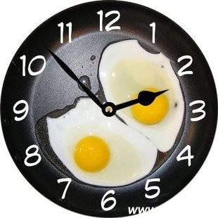 不知道紅太狼用來拍打灰太狼的那個平底鍋是否在清晨,煎著兩個愛心雞蛋?這款平底鍋掛鐘,很有創(chuàng)意,也很搞怪。它給人的寓意就是:我是時樂鍋,掌管時間是我的樂趣所在。