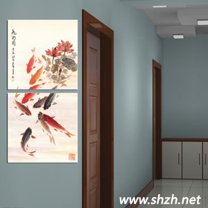 第二類:寓意吉祥如意的九魚(yú)畫(huà)。九魚(yú)畫(huà)在市面上也是比較常見(jiàn)的裝飾畫(huà)之一,但是很多人只是知道它可以帶來(lái)好運(yùn),其他的并不是很了解,其實(shí)之所以會(huì)被創(chuàng)作成九條魚(yú),是因?yàn)?這個(gè)數(shù)字本身就有長(zhǎng)長(zhǎng)久久之意,而魚(yú)就是萬(wàn)事如意的象征,俗話中“年年有余”也是“魚(yú)”字的諧音,另外在傳統(tǒng)風(fēng)水學(xué)上紅色就是旺運(yùn)的顏色,所以《九魚(yú)畫(huà)》那九條嬉戲的鯉魚(yú)寓意是極好的,如果在你家的玄關(guān)處掛上一幅絕對(duì)可以幫助你招攬財(cái)運(yùn)。