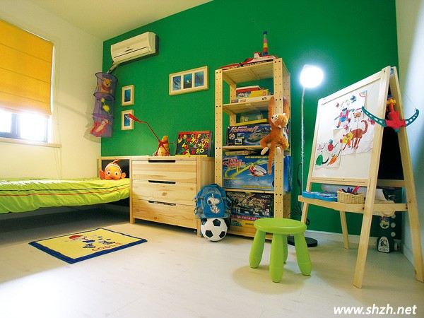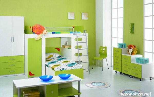 綠色是一個快樂的色彩,用這個顏色來打造兒童房特別是男孩子的房間可以幫助小寶貝形成開朗的性格。