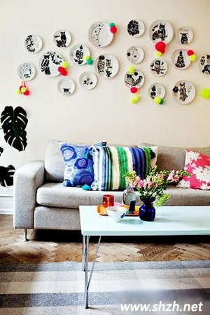 貼出個性:你的家里多多少少會有一些少有破損的盤盤碟碟,對于這些有缺口的盤子要是繼續(xù)使用的話,會非常的不安全,但是扔了話又覺得太浪費了,所以日積月累,你家總避免不了存了很多這樣有缺角的碟子,那么現(xiàn)在你就把他們?nèi)磕贸鰜頀煸趬ι习桑匦聡娚掀恋纳?,隨意的掛在墻上就是極具個性的沙發(fā)背景墻了。