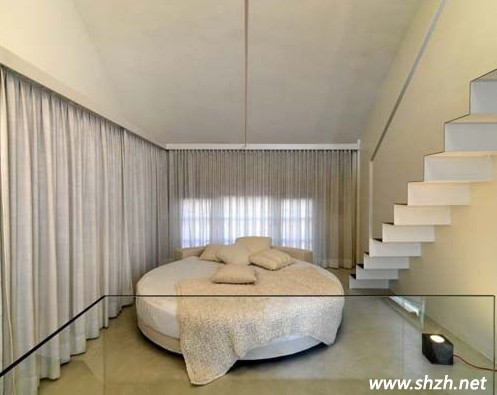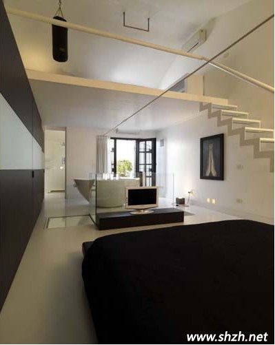 三樓臥室圓床邊的樓梯通向四樓,圖四中的第一幅圖可以看見(jiàn)四樓的全景,左側(cè)是一個(gè)巨大的浴缸,讓你享受沐浴的快樂(lè),右側(cè)也是一個(gè)臥室的設(shè)計(jì),整棟LOFT的風(fēng)格都是極致簡(jiǎn)約。四樓中還有一個(gè)樓梯,小編這里就不為大家展現(xiàn)五樓的風(fēng)景了,由大家去想象吧!