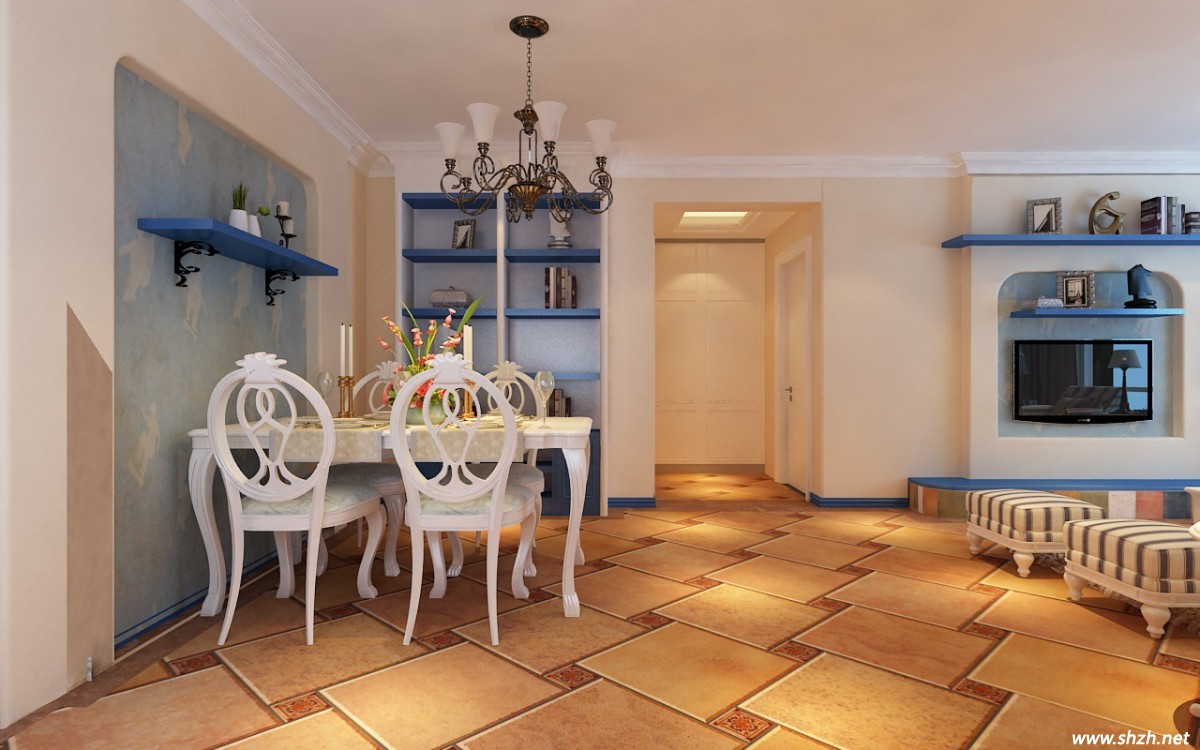圖一:小戶型的餐廳一般都是設(shè)立在墻角處,這樣的布局讓餐廳與客廳不至于有沖突,而且功能區(qū)分的非常明顯,例如圖一里的這個(gè)地中海風(fēng)的餐廳,設(shè)計(jì)師用一套白色可愛的餐桌椅放在房間的角落里,沒有給空間帶來(lái)任何突兀感,同時(shí)設(shè)計(jì)師順便再這個(gè)區(qū)間里增添了兩個(gè)收納空間,酒柜很實(shí)用,餐桌上方的收納板上可以放一些裝飾品,美化空間。