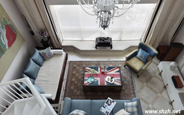 客廳是居室內(nèi)重要的裝修部分,很多時(shí)候代表著主人的興趣愛好以及生活品味。在這個(gè)別墅客廳空間里,一中一西、一軟一硬的沙發(fā)布局,非常和諧,深藍(lán)色的布藝抱枕與米黃色的沙發(fā)搭配得恰到好處,而旁邊藍(lán)色的布藝沙發(fā)卻也顯得十分的協(xié)調(diào),地毯的布置顯得整個(gè)客廳特別的干凈整潔。米字旗的茶幾桌冥冥中暗示著主人對留學(xué)英國女兒的思念。茶幾桌上的裝飾擺件都是主人精心挑選的心愛收藏品,顯得特別的雅致珍貴。