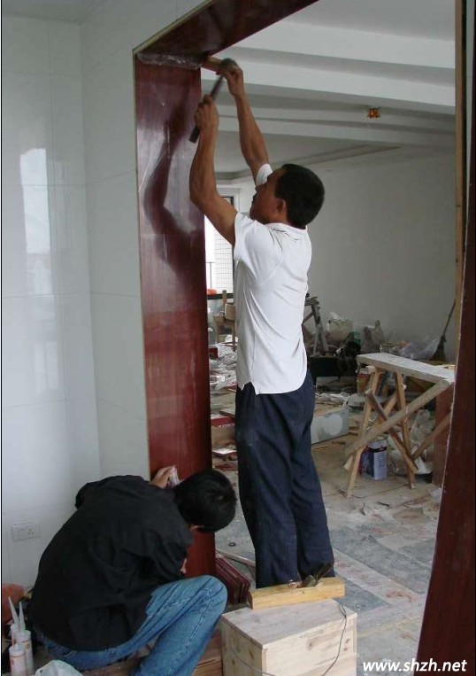 1、過門石、大理石窗臺的安裝。過門石的安裝可以和鋪地磚一起完成,也可以在鋪地磚之后,大理石窗臺的安裝一般在窗套做好之后,安裝大理石的工人會準(zhǔn)備玻璃膠,順手就把大理石和窗套用玻璃膠封住了。