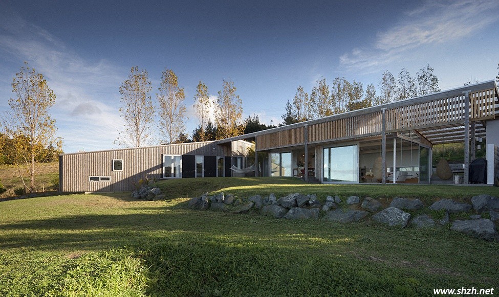 美麗的新西蘭,美麗的草原,當我們提及新西蘭時最先想到的便是風吹草低見牛羊的悠然自得。四季怡人的溫帶海洋性氣候讓新西蘭風景優(yōu)美,是旅游度假的絕佳圣地。在風景瑰麗的新西蘭中,房屋建設與室內(nèi)裝修也不能脫節(jié),所以新西蘭的裝修與設計也是世界矚目的焦點,上海裝潢網(wǎng)小編今天帶來的便是一座實木與玻璃交錯的房屋,它地道了詮釋了新西蘭的自然風情,像極了一匹蹦騰的駿馬,徜徉在帶著青草香的草原上,你想來看看嗎?跟著小編走吧!
