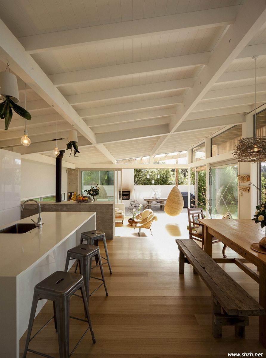 概要: 美麗的新西蘭,美麗的草原,當我們提及新西蘭時最先想到的便是風吹草低見牛羊的悠然自得。四季怡人的溫帶海洋性氣候讓新西蘭風景優(yōu)美,是旅游度假的絕佳圣地。在風景瑰麗的新西蘭中,房屋建設與室內(nèi)裝修也不能脫節(jié),所以新西蘭的裝修與設計也是世界矚目的焦點,上海裝潢網(wǎng)小編今天帶來的便是一座實木與玻璃交錯的房屋,它地道了詮釋了新西蘭的自然風情,像極了一匹蹦騰的駿馬,徜徉在帶著青草香的草原上,你想來看看嗎?跟著小編走吧。