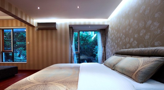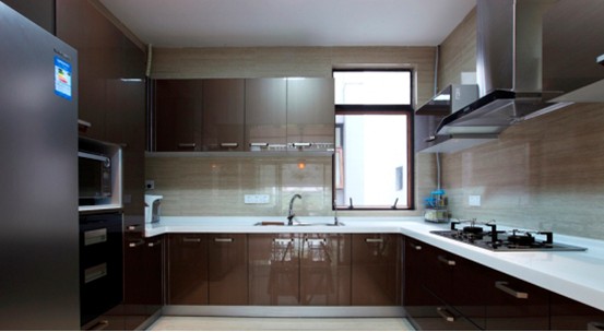 由于本案是二層的疊墅,負(fù)一層還有一個(gè)比較大的空間,設(shè)計(jì)成一個(gè)大開(kāi)放式書(shū)房,另加一個(gè)客房,還有工人房兼儲(chǔ)物間。另外,一樓過(guò)道通過(guò)墻體的改動(dòng)拓寬了,使空間拓寬;