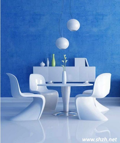 藍(lán)色在裝飾中常常是一種地種海風(fēng)情設(shè)計的體現(xiàn)。它能讓人在家居空間中體會到寧靜的氣氛,一切的喧囂擾嚷似乎都被這種寧靜的氣氛隔絕在了屋外。無論在外有多么的疲憊與煩躁,回到家,回到這個寧靜的港灣,一切壓力都可以被它包容、被它融化。生活變得簡單而舒適。藍(lán)色對于個人而言還具有調(diào)節(jié)神經(jīng)和鎮(zhèn)靜安神的作用。藍(lán)色給人的感覺是清新淡雅,與各種水果色彩相配也很養(yǎng)眼,但在家居中重點(diǎn)有兩個地方不宜用到藍(lán)色,那就是餐廳和廚房。藍(lán)色在色系中屬于冷色系,若餐具用藍(lán)色會影響食欲,同時,餐廳中不宜安裝白熾燈或藍(lán)色的情調(diào)燈,科學(xué)證明,食物在藍(lán)色燈光的照射下看起來不誘人。但是,若在衛(wèi)浴間使用藍(lán)色,卻能強(qiáng)化神秘感和隱私感,值得一試。