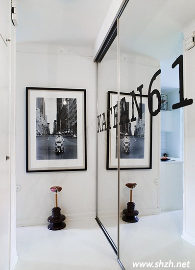 玄關自然是重要的一部分,因為客人首先看到的是玄關,如果玄關給人壓抑的感覺,我相信誰都不會再有心情去觀賞居室的其它區(qū)域了。我們來看設計師設計的美妙之處吧!在玄關處采用鏡面移門作為隔斷墻,鏡面其實能起到視覺上的擴大空間的作用,而且主人在出門之前,還能整理著裝,非常方便。