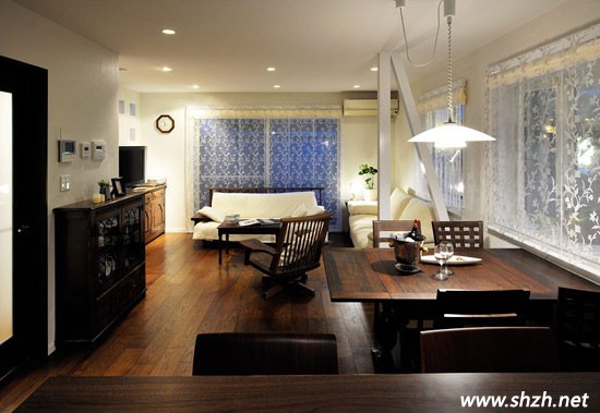 日式風(fēng)格設(shè)計(jì)喜歡采用原木裝扮家居,非常特近大自然的生活環(huán)境。客廳的設(shè)計(jì),一眼忘去映入眼簾的則是深木色的地板,紋理清晰可見(jiàn),自然氣息濃厚。同樣餐桌也是采用原木作為材質(zhì),整個(gè)空間不僅搭配和諧,還具有立體感。但是,居室的其它區(qū)域,卻明顯的呈現(xiàn)出現(xiàn)代時(shí)尚的感覺(jué)。比如白色的布藝沙發(fā),顯得干凈整潔,寬敞舒適,使得單一的空間有了一絲時(shí)尚的味道。窗簾的選擇上也別具個(gè)性,鑲嵌白色的花紋,顯得更加的浪漫溫馨。