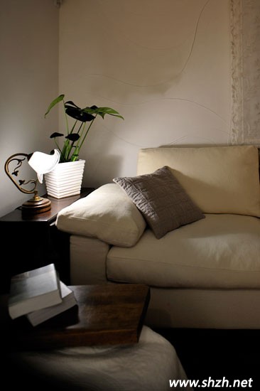 小小角落,也擁有自然浪漫的氣息。麻色的布藝沙發(fā),感覺(jué)溫暖而舒適,給小角落的裝飾更具生活的恬淡韻味。沙發(fā)邊上的小桌子,深木色打造,有種復(fù)古的氣息。桌上形狀獨(dú)特的小臺(tái)燈,潔白如玉,而旁邊的綠植,則更是讓這樣小小的空間充滿無(wú)限的自然色彩。