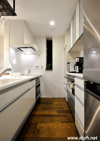 客廳給我們的印象不僅充滿日式的風(fēng)味,還擁有現(xiàn)代時(shí)尚的氣息。而廚房的設(shè)計(jì),木質(zhì)搭成了一個(gè)小吧臺(tái),款式簡(jiǎn)單,卻依舊清新靚麗。兩張細(xì)高的座椅,原木打造,卻別有一番風(fēng)味,造型獨(dú)特美觀,不失時(shí)尚性。白色的廚房空間,提升了空間的亮度,視覺(jué)上更加寬敞。也許你并沒(méi)有在意角落里的那個(gè)小小酒架,但這樣的設(shè)計(jì)卻盡顯溫馨浪漫,將幾瓶紅酒插入,拿取也很方便,夫妻小兩口在此品酒聊天,浪漫無(wú)比。
