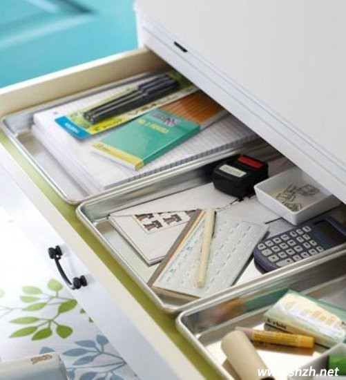 很多人的抽屜里都是凌亂不堪的,因?yàn)樗麄儾欢撛鯓觼碚磉@些零碎的東西。關(guān)上抽屜門后,也許不會(huì)讓人覺得特別雜亂無章,但是每當(dāng)你需要找東西的時(shí)候,一打開抽屜,你會(huì)發(fā)現(xiàn)這根本解決不了干凈整齊的問題。而且如果抽屜也能分門別類的整理,還是可以擁有強(qiáng)大的收納功能的。因此,在抽屜里進(jìn)行小隔間的劃分,把學(xué)習(xí)用品等小件分開存放,有序的收納才能為日后的使用帶來方便。