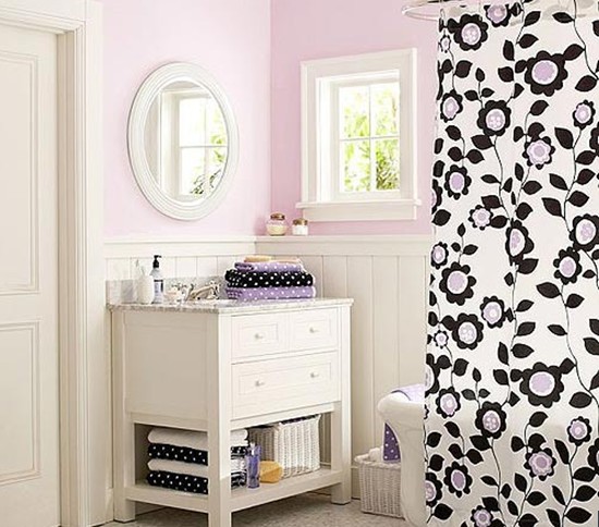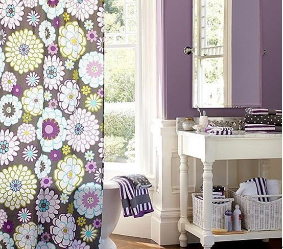 概要:   浴簾可以有聚攏熱蒸汽的作用的同時,還有維持淋浴區(qū)局部溫度的作用,當(dāng)然它也要比玻璃門價格要便宜的很多。浴簾是一個懸掛在帶淋浴噴頭的浴缸外面、或者淋浴范圍的窗簾狀物品。浴簾主要用于防止淋浴的水花飛濺到淋浴外的地方;及為淋浴的人起遮擋作用?! “咨臐嵕吆图揖咔逦终麧?,配上剪影般的黑色花影,搭配紫色的花心,浪漫又不是檔次?! “咨c紫色搭配頗具優(yōu)雅的氛圍。
