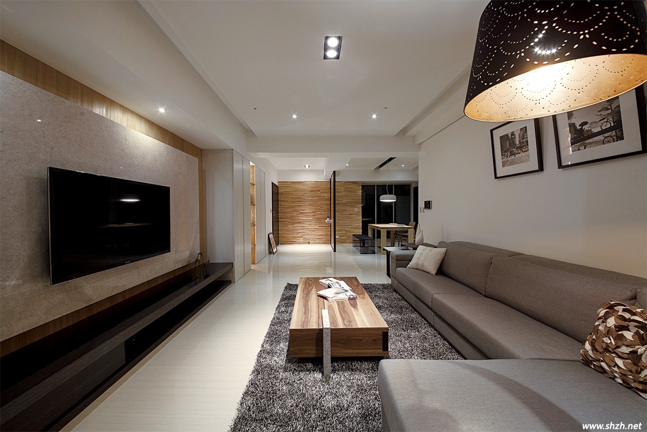 客廳利用“線與面”的手法進(jìn)行大面積處理,以中性的灰色為基調(diào),舒適宜人。其中電視墻的設(shè)計是設(shè)計師與屋主討論最久的部分,因為屋主喜愛木材做背板,設(shè)計師則建議耐久性的石材,經(jīng)過意見中和后,決定以木材搭配石材來鋪設(shè)電視墻,兼具溫暖、粗獷,饒富趣味。