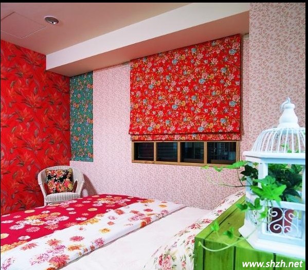 咋一看覺得紅色墻紙的臥室俗氣是不,但是紅色代表的是希望,是奮進。喜歡紅色的人都是表現(xiàn)出向上的一面。臥室里紅色的墻紙搭上紅色的窗簾讓臥室看起來和諧一致。配上旁邊的幾點綠意。一副紅紅火火的景象。