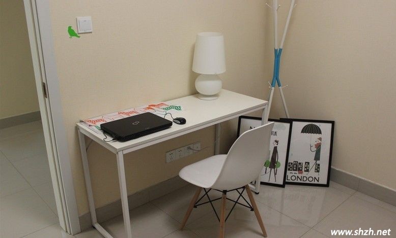 書房的裝修的很簡單,桌子上面擺著純白歐式的臺燈,開光處那一綠色小鳥讓人眼前一亮,主人裝修時,地上擺放的裝飾花,也處處點綴著綠意。地中海式的簡易沙發(fā)很浪漫。