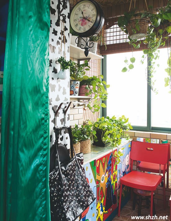一進門的感覺并不是現(xiàn)在大眾的簡約時尚,炫彩藍(lán)色掛布是不是特別引人耳目呢。小小的空間被綠色枝藤充滿著,是不是如進了熱帶雨林一般,墻壁畫又個性十足。純天然的木質(zhì)材料椅子,吊頂上的藤條絕對給你東南亞地地道道的味道。