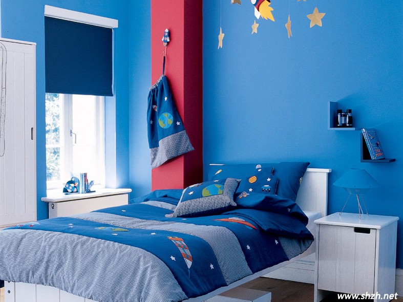 只有純真無(wú)邪的孩子才能配得上如此藍(lán)色星空夢(mèng)幻般的房間,在這房間里,孩子會(huì)神清氣爽,充滿活力。低調(diào)而養(yǎng)眼的背景色與床單相應(yīng),床單上可愛(ài)的卡通圖案將可愛(ài)全部烘托出。就連窗簾也全部選用純藍(lán)色,讓孩子暢游在寶石藍(lán)般的幻想中。