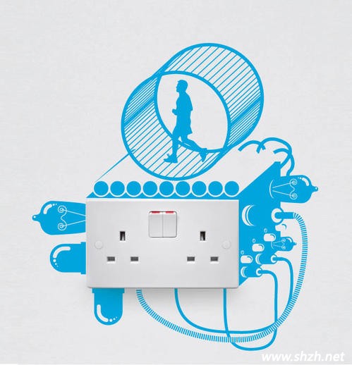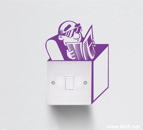 開關(guān)里面躲了個(gè)老頭在看書,靠著的沙發(fā)一定很舒服,3D效果的開光墻讓我們誤以為開關(guān)是凸出來的。