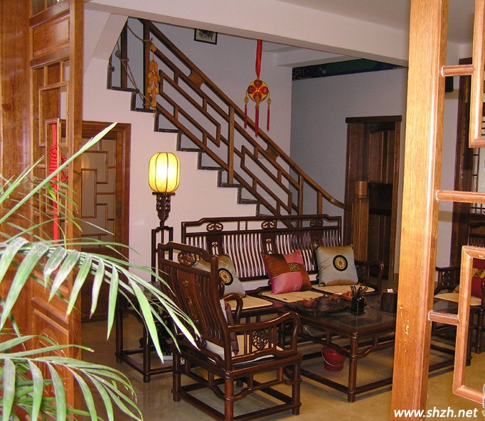 簡單舒適是現(xiàn)在復古風的一向趨向,告別華麗的擺設(shè)和裝修,只有中國味十足的桌椅,樓梯和隔斷,好像在鏤空的世界里面,充滿紫檀木的復古味道。乳白的墻壁上在昏暗的光線下很有味道。淳樸的家具顏色讓一切看起來都特別舒服,沒有一點壓力。