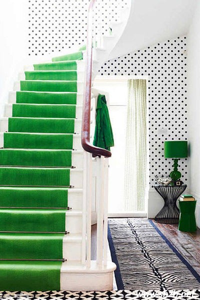 看完淺色系地毯的簡約時(shí)尚,再讓你感受鮮艷的純色系帶來的視覺感受。綠色的樓梯地毯瀑布傾盆而下,加上室內(nèi)的綠色裝飾搭配,滿屋子的綠色讓人身輕氣爽,呈現(xiàn)出一種別樣的浪漫。
