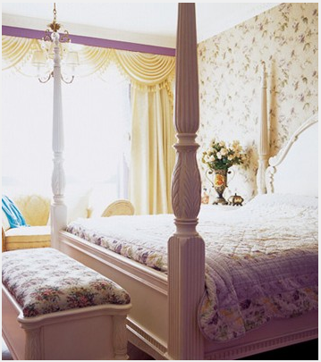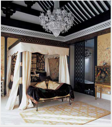 讓人側(cè)目的還有房間中央的那張幔帳低垂的四柱床。它該是這里的主角。設(shè)計(jì)的主旨很明顯,就是要給人一種震撼的視覺效果。這個(gè)房間無(wú)處不散發(fā)著欣喜、華美的格調(diào),而與此同時(shí),勃勃的生機(jī)也便蘊(yùn)含在這里的每一處細(xì)節(jié)之中了。是啊,讓人感覺振奮的細(xì)節(jié)都在了,遠(yuǎn)離嗜睡的日子還會(huì)遠(yuǎn)嗎?