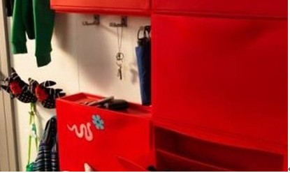 對于三口之家來說,家里多了個寶貝,相對于以前來說,現(xiàn)在又增添了不少物品。小孩玩物雜物非常多,因此需要劃分開各自的領域,以孩子的升高為基準,將儲物柜釘在他夠得著的地方,存放鞋子和玩具。