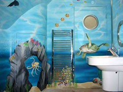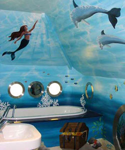 沐浴的時(shí)間也可以是如此的快樂,孩子現(xiàn)在能和海豚游泳、和美人魚嬉戲,而且在有主題的壁畫中到處濺濕。
