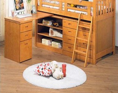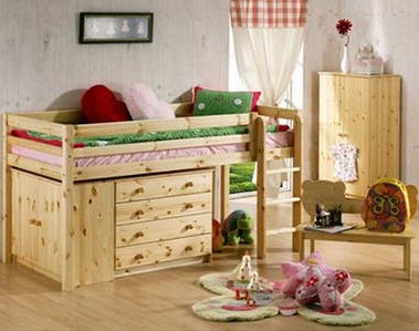 有的家長會擔心雙層床會對孩子的安全因素帶來隱患。但是一般而言,如果孩子較小,沒有安置學習空間的必要的話,家長可以選擇“矮”一些的兒童雙層床。而且這一類的床通常以實木為主,造型多樣,穩(wěn)定性強,護欄設置得較高也較周全。