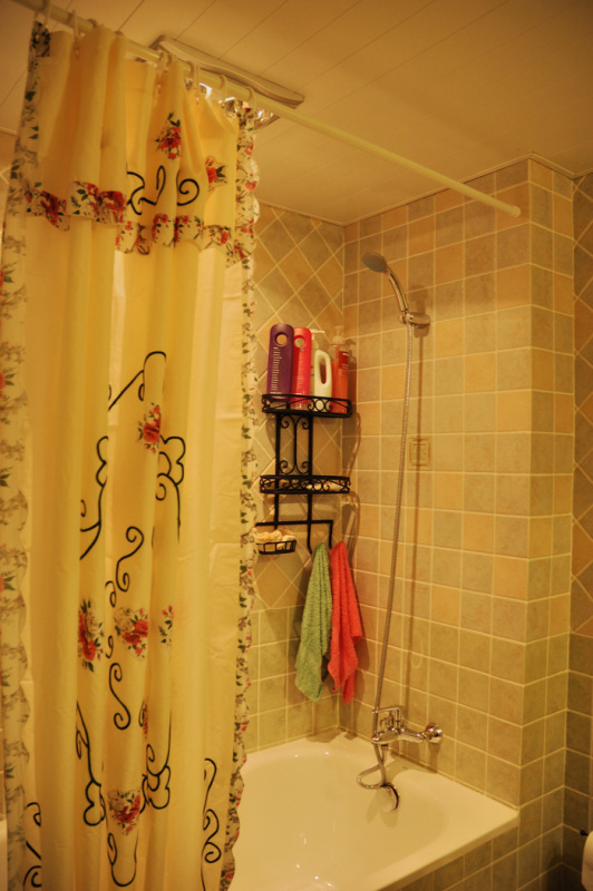 衛(wèi)生間的浴缸,以花簾子隔開(kāi),私密空間絕對(duì)。