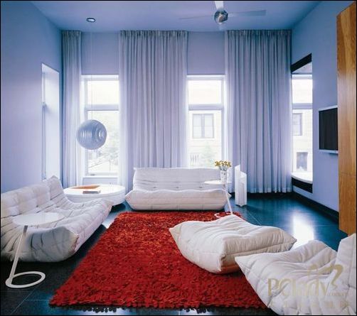 簡約的客廳,同樣簡約的落地?zé)?,看上去就很舒服的純擺布藝沙發(fā),一切淡雅,沉靜,但地板上艷麗的玫瑰紅地毯躍然而出,襯托出不同的個性,時尚感隨之而來。