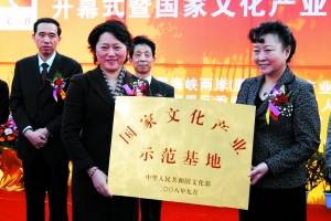 中國(guó)建筑裝飾協(xié)會(huì)會(huì)長(zhǎng)馬挺貴(左五)參加文化部向漆寶齋授牌的開幕儀式