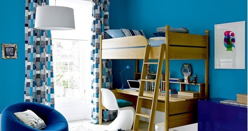 概要: 兒童房運(yùn)用亮色的涂料和充滿活力的圖形可以給孩子更多愛的安慰,并且有助于孩子的健康成長。因此色彩的運(yùn)用在孩子的的成長過程中扮演重要的角色。藍(lán)色的海洋 運(yùn)用海藍(lán)色給空間營造干凈利落的感覺。在那懷舊的柚木色床架體現(xiàn)了回歸自然的感受,這種顏色也可以培養(yǎng)男孩子的堅毅個性。