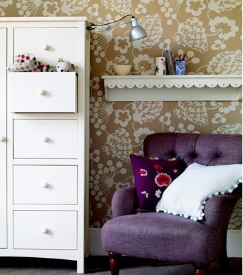 局部使用鮮艷的亮色家具可以活躍空間的氣氛。墻面的色調(diào)如果選擇白色的基調(diào),家具的色彩就可以鮮艷一些。也可以采用同色系墻面與家具,只是深淺不同。如果墻面是深色,家具可選擇淺色來調(diào)節(jié)沉重的氛圍。比較復(fù)雜的圖案壁紙盡量搭配單色的家具。