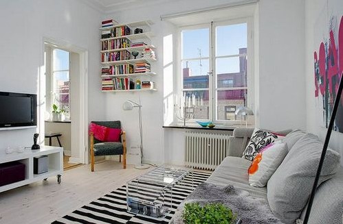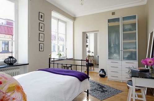 整個(gè)空間都是以白色作為主色調(diào),干凈明了,搭配些色彩明快的軟飾在里面,頓時(shí)“生氣”了幾分。