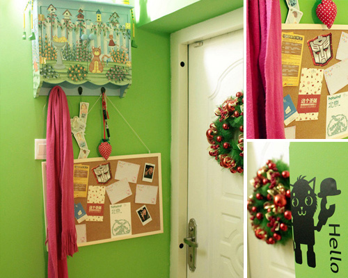 細(xì)節(jié)處,我們從拼圖來看吧,可愛的小掛板記載了主人每天的心情和行程安排,便利而貼心。玫紅的加入提升了整個空間的女性情懷。