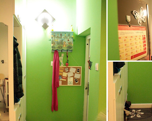 居家的色彩如意度,是根據(jù)每個人對于家不同的概念來定。這一個小戶型從色彩定位到設(shè)計(jì)走向是由MM自己動手操作的,溫馨舒適,即使是小戶型依然非常出彩。我們從綠色玄關(guān)看起,玄關(guān)在入門的第一刻就充分吸引客人眼球,象征生命力的嫩綠透露主人是個充滿生機(jī)活力的人,色彩的生命力也可以體現(xiàn)主人的情操呢。