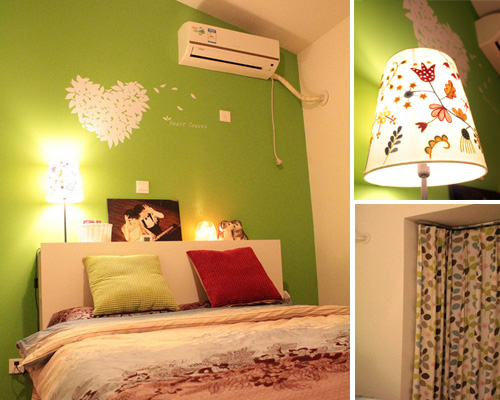 進(jìn)入的第一個房間是臥室,這個綠色背景墻臥室,充滿童真童趣的就寢空間。生命力依舊。