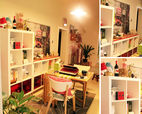 再到餐廳來,餐廳是溫馨的暖黃色調(diào)。于過道的拐角處裝出了一小書房,空間利用率做到了極致,圓形的吸頂燈照的透亮,電腦臺和寫字臺都有,既擺放著書籍也有收納框。