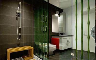 兼具掩飾面盆管道與使用儲物功能的洗面臺柜,玻璃隔斷上附著的竹子沿襲了中國文化中堅韌挺拔的精神,玻璃隔斷讓空間干濕分離,腳下的鵝卵石既有園林情懷又起到了按摩的功效,精巧別致的空間布局賞心悅目。白色潔具在黑色的映襯下愈發(fā)顯得纖塵不染。