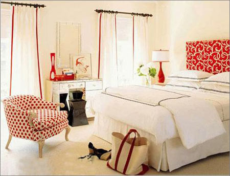 2.整個臥室以白色打底,點綴入鮮艷的紅色家居,頓時有了“萬綠叢中一點紅”的驚艷。