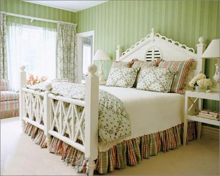 5.居室自然隨意的氛圍依靠的是細(xì)節(jié)上的打造,盡管綠白條紋出現(xiàn)在靠包、床罩、手繪燈罩和相框上,女主人還是讓每種條紋的寬度都各不相同,雖然整體看上去好像有相似之處,但單獨看每一件物品的感覺都完全不同,那都是女主人從不同的市場和古玩店一一淘來的。