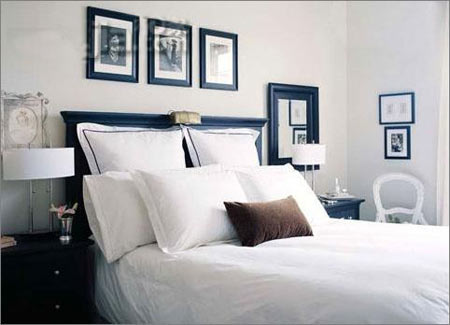 6.藝術(shù)品是杰茜千變?nèi)f化室內(nèi)景觀的關(guān)鍵因素:黑白照片上的樓梯圖案,營造出故意重疊的視覺效果。而臥室的黑白色調(diào),則充滿濃濃的懷舊味道。用相框來展示黑白圖片的花費并不昂貴,同時黑、白色的相框本身,也形成有特色的反差,突顯出主人自己的個性。至于相框中展示的內(nèi)容,絕大部分是杰茜從跳蚤市場,或者二手商店中買回的舊書中剪下來的。“有時候我不確定自己需要什么,我甚至?xí)⒁粡埡芪说目ㄆ旁谙嗫蚶?。?nbsp;杰茜說。