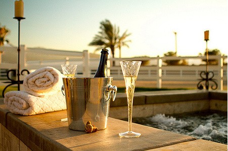 西式婚禮儀式中有新人共同倒香檳塔的習(xí)俗,寓意著想幸福與喜悅與所有來賓共享,當(dāng)然那只是一個儀式,所以婚禮中新人是沒有辦法安靜、愜意地享受香檳酒的。而在浪漫的夜晚,擯棄外界的打擾之后,新人共同品嘗優(yōu)質(zhì)的香檳酒是一個非常甜蜜的事情。香檳“CHAMPAGNE”一詞,與快樂、歡笑和高興同義。更多情況下它是一種慶祝佳節(jié)用酒,具有奢侈,誘惑,和浪漫的色彩,所以是婚禮的??汀?br /> 可以與酒店溝通,送你們兩杯上好的香檳酒,也可以將私藏的珍品在那天開啟。不妨用一些絲帶或鮮花裝飾酒杯,更唯美夢幻。