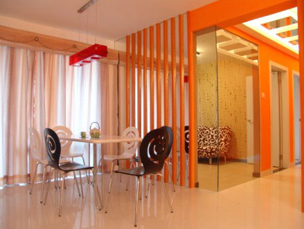 空間用色很大膽,但是整體效果卻是非常的漂亮?xí)r尚。鮮亮的橘紅色非常的出彩。