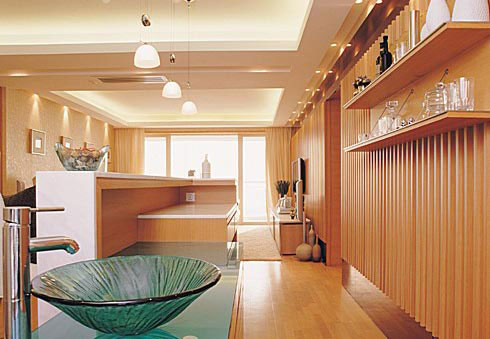 吧臺處設(shè)計了玻璃面盆,呼應(yīng)整體空間的時尚感。